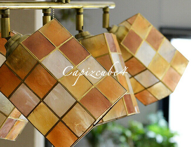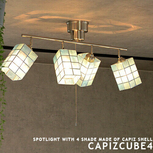 シーリングライト おしゃれ LED対応 6畳 8畳 4灯 スポットライト [CAPIZ CUBE 4:カピスキューブ4] リビング用 居間用 ダイニング用 食卓用 シェルランプ 貝殻 ハンドメイド アジアン リゾート 照明 子供部屋 間接照明 ワンルーム 点灯切替 段調光 プルスイッチ 西海岸(2-2