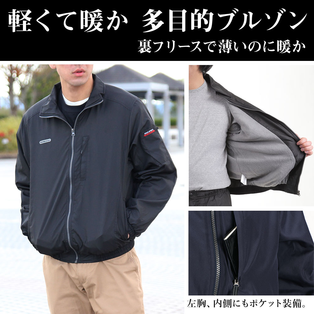 カジメイクのワークブルゾンは さまざまなシーンでお使いいただけます 【ブランド】 カジメイク kajimeiku BOXE SPORTS ボグゼスポーツ 【用途】 作業服 作業着 農業 農作業 制服 仕事 仕事着 日用大工 ガーデニング DIY 庭仕事 草刈り 畑仕事 工場 掃除 整備士 普段着 散歩 ウォーキング 犬の散歩 アウトドア キャンプ 自転車 サイクリング 【こんな方にオススメです】 メンズ レディース 男女兼用 男性 男性用 女性 女性用 【シーズンイベント】 稲刈り 引越し 雪かき 除雪 【贈り物にも最適】 父の日 敬老の日 誕生日 クリスマス ラッピング 結婚祝 職場 入学祝 退職祝 卒業祝 プレゼント 【サイズ】 M L LL 3L 【カラー、デザイン、柄】 ブラック ネイビー ダークグレー 【素材】 表地:ポリエステル100% 裏地:ポリエステル100% 中わた:ポリエステル100% 【仕様】 フリース 右胸ポケット 内ポケット ペン挿しポケット ファスナー 中わた 【商品説明】 軽くてしなやかな素材を使用した防寒ブルゾン。